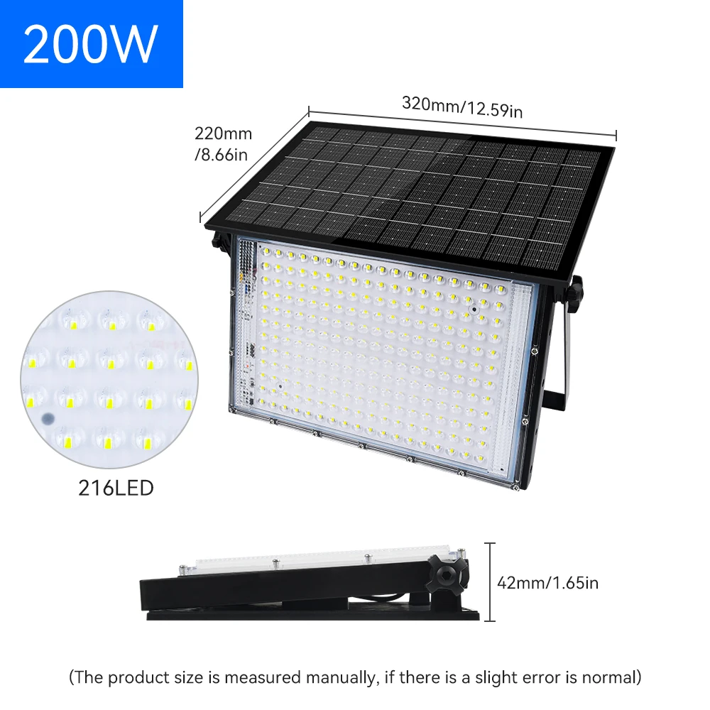 100W 200W LED Portable Solar Floodlight Outdoor Hiking Camping Light Waterproof IP65 Wall Light For Garden Patio Garage Backyard