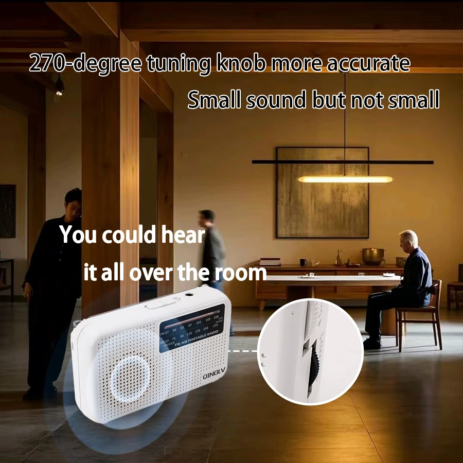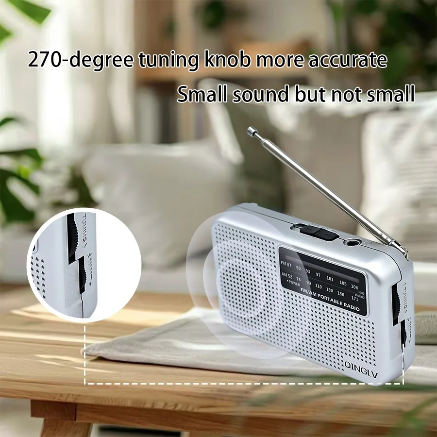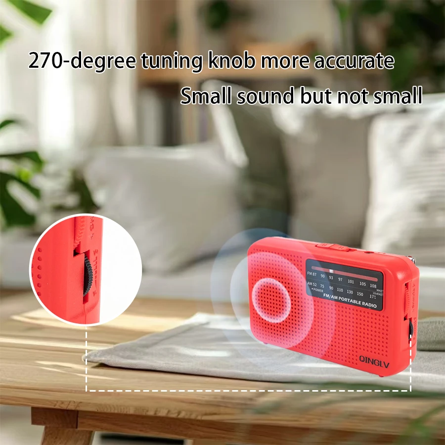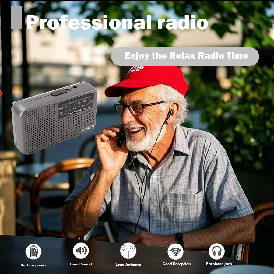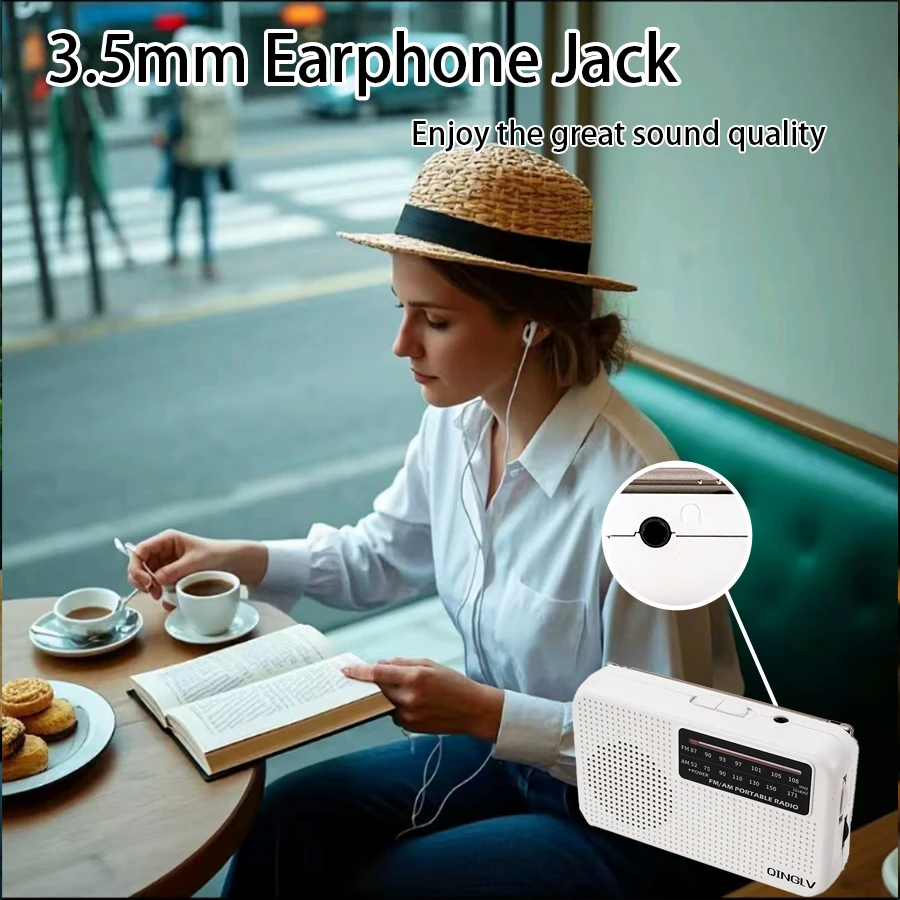 AM/FM portable radio with high sensitivity and high sound quality, uses durable No. 7 batteries, built-in high quality