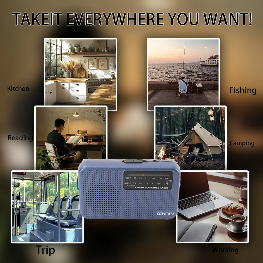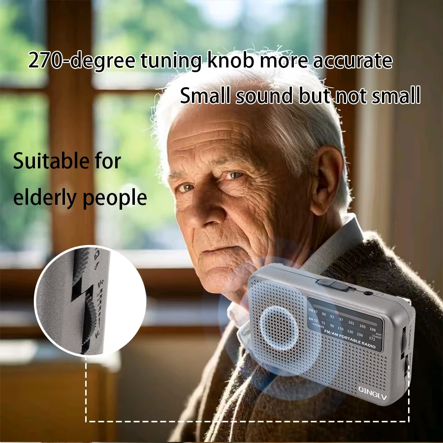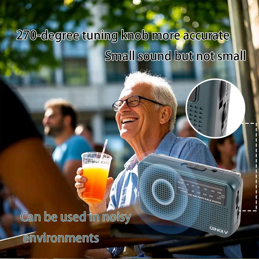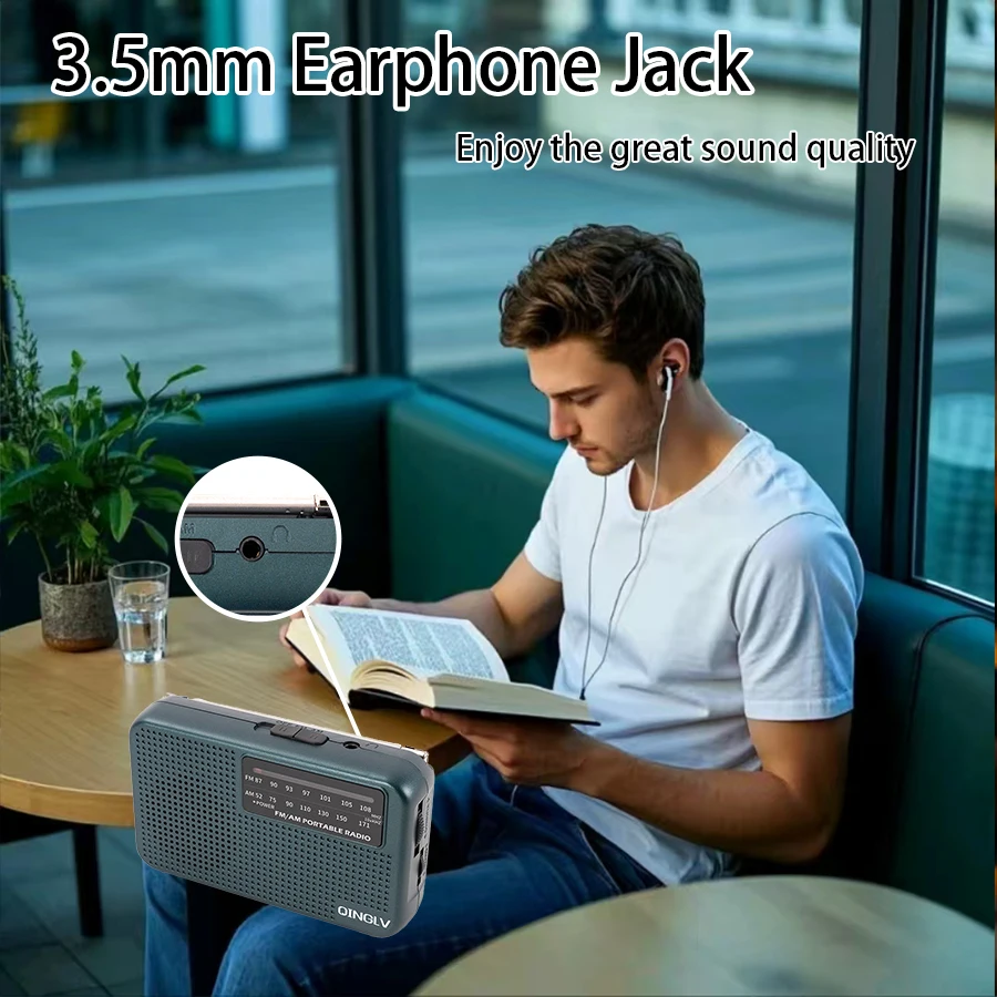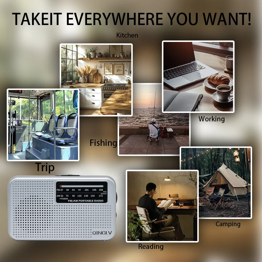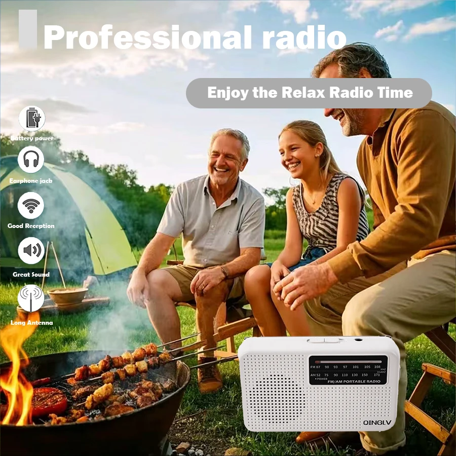 AM/FM portable radio with high sensitivity and high sound quality, uses durable No. 7 batteries, built-in high quality