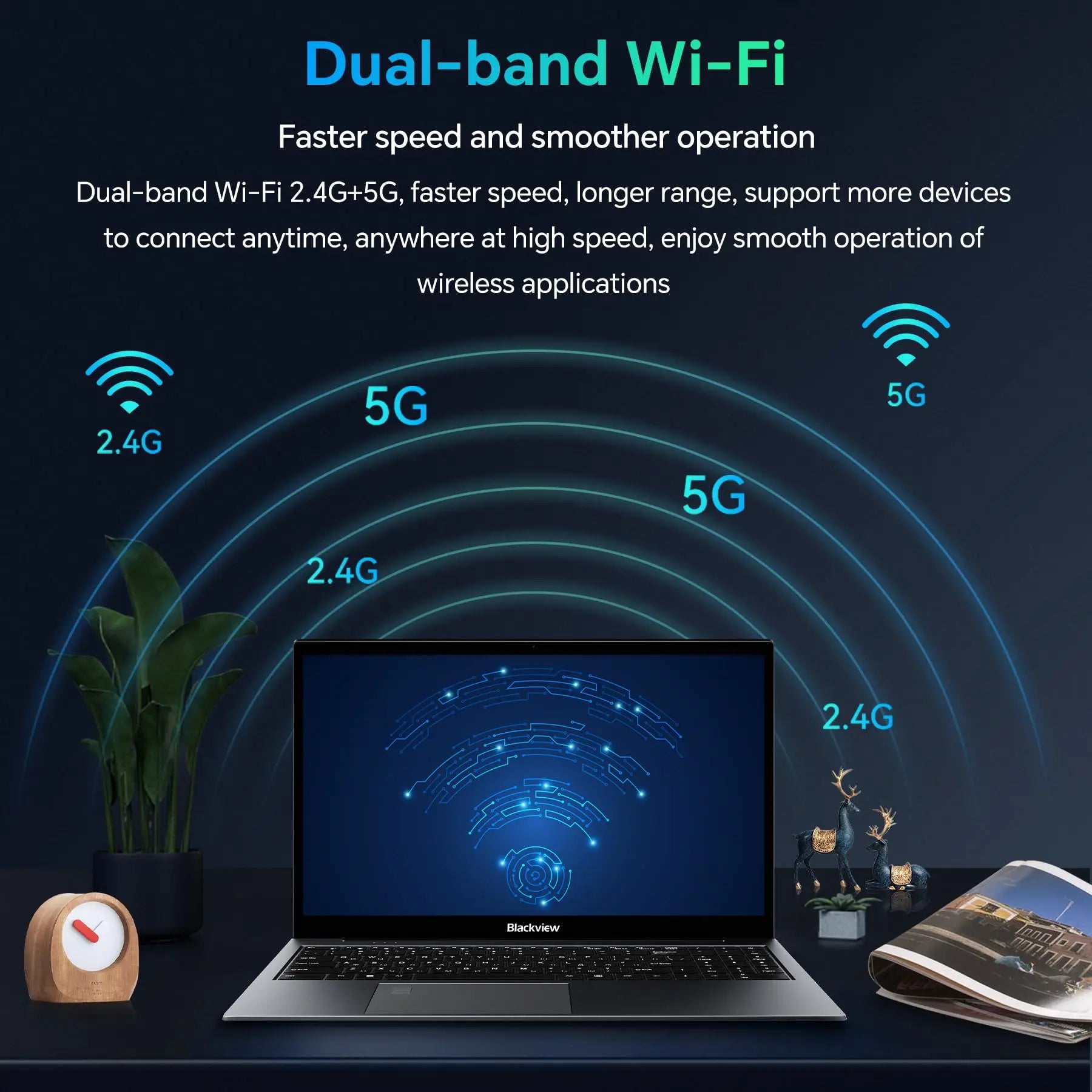 Blackview Acebook8 laptop ensures seamless connectivity with multiple ports, including Mini-HDMI, headphone jack x1, USB 3.0 x2, USB-Type C, and a TF card slot. The Gaming laptop also features a numeric keypad, Bluetooth 5.0, and 2.4G/5G WiFi function, enhancing efficiency and convenience in your daily life.
