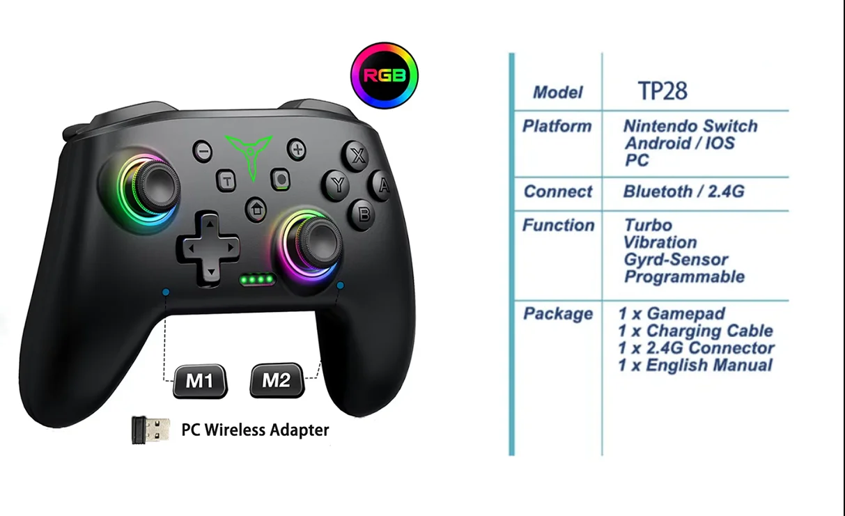 Dinofire Wireless Bluetooth RGB Controller for Nintendo Switch/Switch OLED/Switch Lite/PC/Mobile Gamepad Multi-Function Joystick