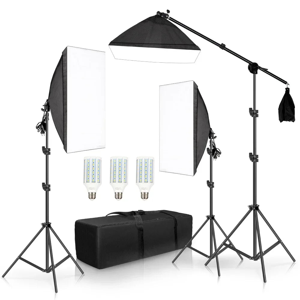 SH 3Pcs SoftBox With Sandbag Professional Photography Photo Studio Softbox Lights Lighting Kit Equipment Boom Arm